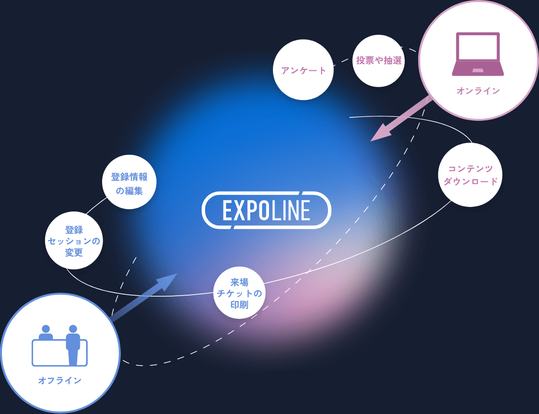 EXPOLINEは、集客から来場、行動ログまでを一元管理。