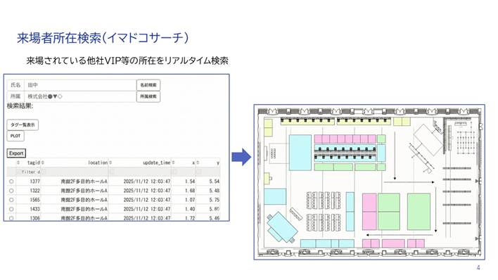 中島: 自社イベントにおいては、「リアルタイムな顧客の把握」が劇的なメリットを生みます。 自分がフォローしたいVIP顧客や重要なお客様が、「今、広い会場のどこにいるのか」がリアルタイムで正確に分かります。これまでのように会場内を探し回ったり、すれ違ってしまったりする手間がなくなり、「今あちらにいらっしゃるからご挨拶に行こう」といった緻密なコミュニケーションが可能になります。